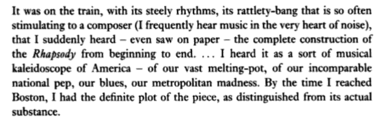 One of my favorite bits of railroad trivia is that Rhapsody in Blue, known as the United Airlines theme with Matt Damon’s voice coming in to tell you about the friendly skies, was inspired by a trip that George Gershwin took by train to Boston. It’s a song I often listen to while on the train, ignoring another book packed into my bag with high hopes of being bookish. The clacks, bangs, and hums of the rails have never produced a symphony, concerto, or even a song for me yet, but they keep me coming back to ride year after year.